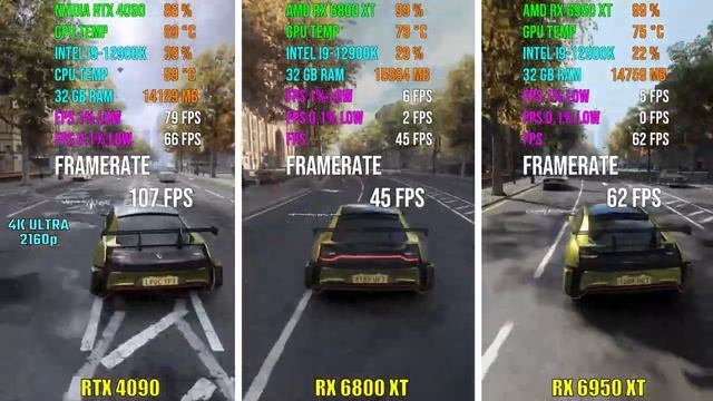 NVIDIA RTX 4090 против RX 6800 XT против RX 6950 XT | Тест в 7 играх 2160p 4K Ultra Benchmarks ✅ RTX 4090 против RX 6800 XT против RX 6950 XT Gaming Benchmarks 00:00 - God of War 01:13 - Cyberpunk 2077 02:28 - Assassin's Creed Valhalla 03:37 - Watch Dogs Legion 04:48 - Red Dead Redemption 2 05:52 - Doom Eternal 07:00 - Horizon Zero Dawn ✅ Тестовый стенд: CPU : INTEL i9-12900k RAM : 2x16GB DDR4 3600MHz G.Skill SSD : Samsung 980 Pro ДО ВСТРЕЧИ В СЛЕДУЮЩЕМ ВИДЕО!! Хорошего дня !!