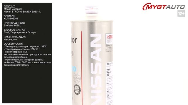 Продукт: Масло моторное Nissan STRONG SAVE X 5w30 1L Артикул: KLAN505301 Производитель: SHOWA SHELL Базовое масло: Shell Гидрокрекинг + Эстеры Пакет присадок: Неизвестно Ссылка для покупки: https://mygt.ru/oil/original-oils-Japan/nissan-strong-save-x-sn-5w-30-1l.html Особенности: - Вязкость кинематическая при 40°С: 61,77 сСт - Плотность при 20°С: 849.8 кг/куб.м - Вязкость кинематическая при 100°С: 10,56 сСт - Индекс вязкости: 162.57 - Зольность сульфатная: 0.82% - Температура потери текучести: -39°С - Температура вспышки: 214°С - Щелочное число: 5.23 мг КОН/г - Пакет современных высокотехнологичных присадок на основе эстеров и молибдена - Рекомендуемый интервал замены: не более 7000 - 8000 в зависимости от режимов эксплуатации Отличие упаковки оригинала: - Дата производства тары на дне упаковки должна быть ровна или ранее даты блендирования продукта #характеристикимаслаKLAN505301#моторноемасло #antonmygt #mygtru #mygtauto #oemcatalog Наш канал ПРАВДА ПРО АВТОМАСЛА: https://www.youtube.com/channel/UC5JygfcXAA5Xq18sxUx_wIQ/ Телефон: 8 800 550 57 22 Бесплатно по России. Внимание! Полное либо частичное копирование данного материала без согласия автора допускается только при указании ссылки на источник (данный канал). Все права защищены. ANTON_MYGT #anton_mygt #anton_voronkov #mygtauto #масломан #каталог масел и спецжидкостей