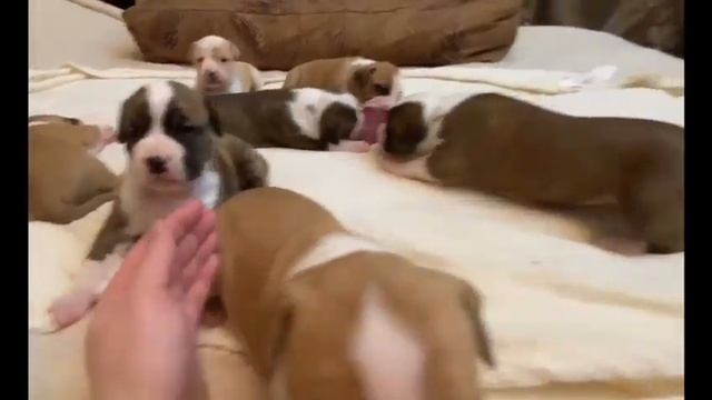 первый прикорм щенков в три недели. Мясная соска. Амстаффы Ценный Приз.