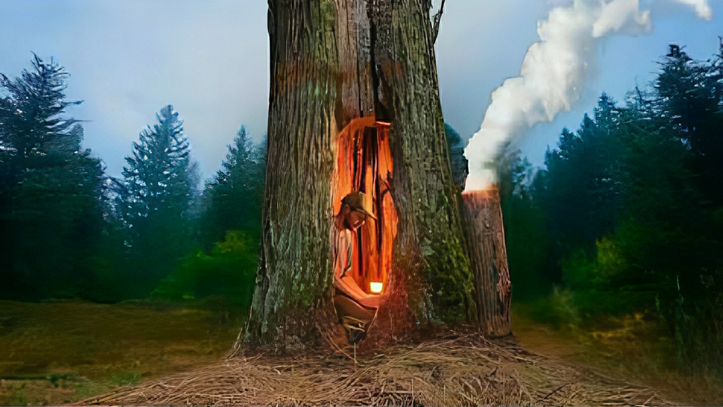 Строю теплое и тайное убежище в стволе старого дуба с глиняной печью. Бушкрафт