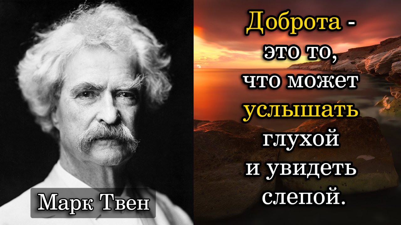 Марк Твен. Доброта - это то, что может услышать глухой и увидеть слепой.