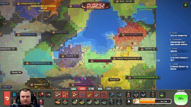 Отправить ДОНАТ Бизарычу - https://www.donationalerts.com/r/bizarre 2 Вариант Отправить ДОНАТИК - https://new.donatepay.ru/@bizarrejoy Заказать МУЗЫКУ на стрим 33р трек 5 мин - https://donatepay.ru/p/bizarrejoy Стрим на VKplay без лагов стрим - https://vkplay.live/bizarrejoy Стрим на ТВИЧЕ тут - https://www.twitch.tv/bizarejoy ТЕЛЕГРАММ канал с чатом Bizarre World - https://t.me/bizarreworld Группа в ВК - https://vk.com/bizarrejoy Ссылка на Правила, таблицу ТУРНИРА 4 сезон - https://clck.ru/3FqBpy Интерактив (ДОНАТ), играем до ТОП 3 вы можете сделать следующее: НОВИНКА Крутануть Колесо ЗАДАНИЙ куча всего интересного - 30р ЗАСЕЛИТЬ СВОЮ СТРАНУ (ТОЛЬКО 1 Страна может быть куплена) ИНТЕРАКТИВ ОБНОВЛЕН, ЛЮДЕЙ ПОКУПАТЬ НЕЛЬЗЯ: Начальное БЕЗРАБОТНЫЙ дает Кофе, без имени, места, х10 чел - 30р Обычное РАБОТЯГА дает бодрящий Кофе, х1 Мир, х15 чел - 50р Бизнесмен ТОРГАШ дает Кофе х2 мир, х30 чел - 100р Богатый ОЛИГАРХ дает Благ и Кофе, х4 мира, х60 чел - 300р Мировая ЭЛИТА дает ВСЕ Бафы, х6 мир, х100 чел - 500р Космос МАСОНЫ дает ВСЕ бафы, х10 мир, х200 чел, отдельный остров - 1000р (Бесплатно из чата селю с 3-4 жителями рандомно после интерактива) ПЕРСОНАЖИ И ГОРОДА Назвать КОРОЛЯ вашим ИМЕНЕМ (без 18+ слов, ок?) - 20р Название Деревни вашим именем (деревня в племени) - 25р Сменить НАЗВАНИЕ своей страны, без мата - 26р БИОМ любой Трава, Джунгли, Лимоны, Конфеты, Алмазы - 41р Сменить название КЛАНА (Альянса) без мата - 51р Добавление скиллов, вещей и атрибутов Королю -Дать КОРОЛЮ способность (какая доступна) (1шт) - 10р (Бессмертие, Гигант, Сила, Мудрость, Гениальность, Регенерация и т.д.) ПОЛИТИКА (передача миров теперь 2к1) Объявление МИРА или ВОЙНЫ стране (ваша страна) - 80р Объявить МИР или ВОЙНУ между чужими странами - 150р Выбрать ЭПОХУ любую на ваш выбор, будьте осторожны - 101р Развалить АЛЬЯНС с союзными странами (свой) - 130р Развалить АЛЬЯНС с союзными странами (любой чужой) - 260р СВОБОДА (до топ 10) Восстание СТРАНЫ обретает свободу (страна_Х захваченная) - 499р (до топ 6 действие, ваше поселение на карте и название+мир) ПОМОЧЬ ПОСЕЛЕНЦАМ РЕСУРСАМИ (дают баф к развитию) Дать КАМЕНЬ, ЗОЛОТО, РУДА, АДАМАНТИЙ, СЕРЕБРО, МИФРИЛ - х1шт = 1р НАВРЕДИТЬ ПОСЕЛЕНЦАМ (после перемирия 30 минутного) Наслать МАГА-ЗЛА пускает огонь на жителей x1 - 100р Наслать НЕКРОМАНТА плодит скелетов х1 - 40р Наслать ДЕМОНА сильный монстр огневой х1 - 60р Атака животных Медведи, Волки, Носороги х1 - 25р Послать злых Бандитов, Холодоков, Снеговиков х1 - 50р ЧУДЕСА ДОБРЫЕ Дать КОФЕ ( +СКОРОСТЬ) !страна! КРОМЕ ВОЙНЫ и 10м ПЕРЕМИРИЯ - 25р Послать БЛАГОСЛОВЛЕНИЕ (дает СИЛУ) !вся страна! - 100р Наложить МОЩНОСИЛ на свою провку, сила Армии! МОщный БАФ - 100р Дать деревне ДРУИДА х5 защищает жителей, реген растений - 33р Дать жителям ДОБРОГО МАГА х3 защищает от ЗЛА (кроме Орков) - 50р Чумной ДОКТОР лечил БОЛЕЗНИ и ЗОМБИ ВИРУС - 55р Божественный ШАР защита всех жителей от урона (временно) - 60р Послать ЧУДО (ЛЕЧИТ - безумие, инфекции, болезни) !вся страна! - 154р ☔ ЧУДЕСА ЗЛЫЕ (после перемирия 30 минутного) ☔ Оживить ДЕРЕВЬЯ или ДОМА вредят людям !3-ая кисть! - 80р Удар МОЛНИИ ЗЕВСА все поджигает в месте удара - 90р Послать ТОРНАДО на деревню указать, все разрушает - 100р Наложить ПРОКЛЯТЬЕ на жителей (делает СЛАБЫМИ) - 111р Поставить ОГНЕННУЮ БАШНЮ сжигает все вокруг - 120р Поставить ЛЕДЯНУЮ БАШНЮ всех замораживает - 120р Наслать СУПЕР ТЫКВА плодит тыквы и очень Агрессивна - 122р АПОКАЛИПСИС (после перемирия 30 минутного) ГРАНАТА кинуть куда либо (кроме армии врага это читерно) - 35р Отправить НЛО в деревню указать какую - 170р Наслать ЗЕМЛ