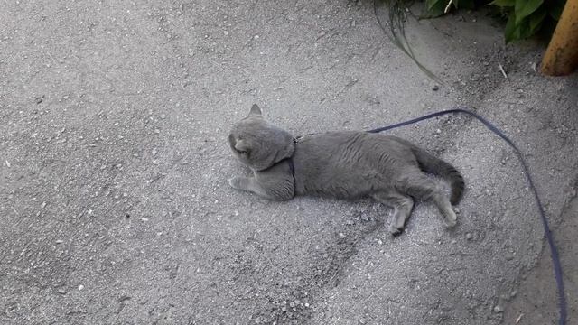 Тенёчке решил отдохнуть котик, остыть от жары.