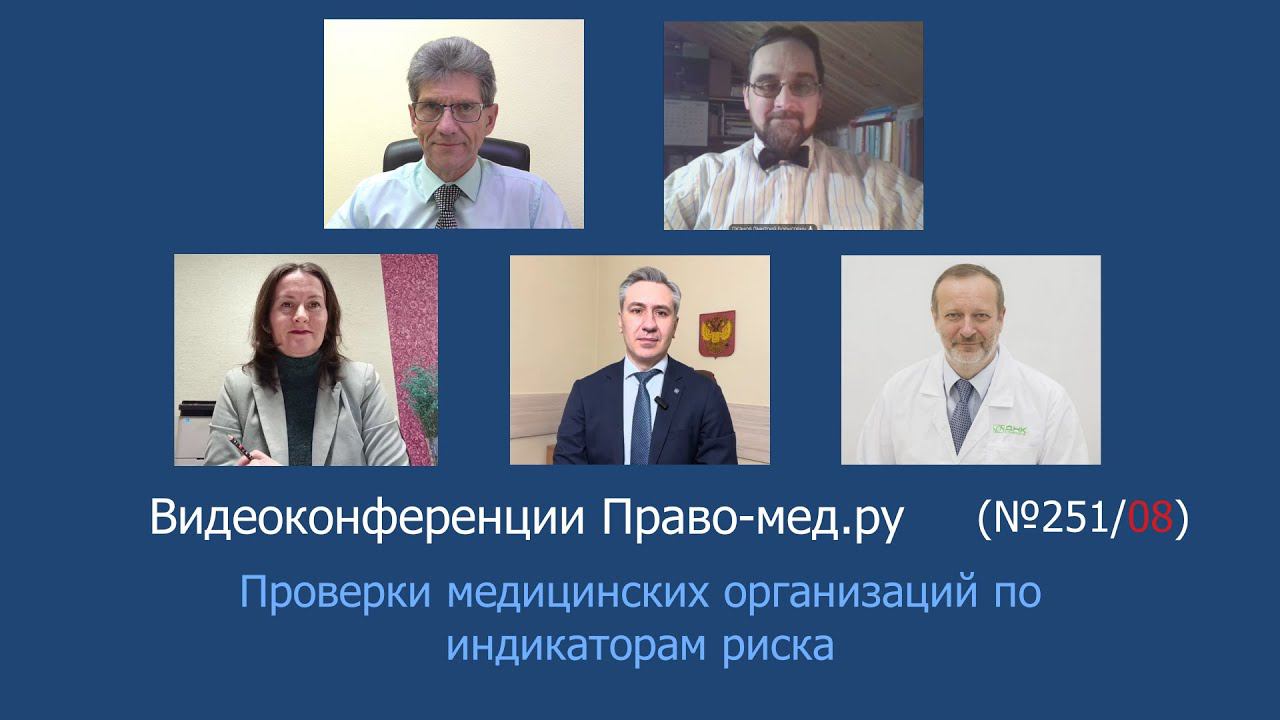 Видеоконференция Право-мед.ру № 251 (08) от 13 февраля 2024 года, на которой обсуждалась административная ТО Росздравнадзора по Ростовской области по привлечению медицинских организаций к административной ответственности по ч.3 ст.19.20 КоАП РФ. Рассмотренный вопрос 1. Показатели смертности пациентов с острым нарушением мозгового кровообращения и инфарктами-зона особого внимания комиссии (службы, уполномоченного лица) по качеству и безопасности медицинской деятельности, ответственного за организацию и проведение внутреннего контроля в медицинской организации? Таймкод Панов А.В., вступление 01:21-04:28 Гаганов Д.Б. 04:41-10:03 Панов А.В. 10:06 -13:24 Чернышук Н.В. 14:04-16:45 Фефилова В.В. 16:49-19:48 Степанов И.О. 19:50-22:21 Участники: Панов Алексей Валентинович, главный редактор информационного портала Право-мед.ру, г. Омск , член АЮР Гаганов Дмитрий Борисович, юрисконсульт Ассоциации организаторов здравоохранения в онкологии г. Санкт-Петербург Степанов Игорь Олегович, врач - невролог, клинический фармаколог, юрист, председатель Ярославской областной общественной организации инвалидов-больных рассеянным склерозом "Гефест", г. Ярославль, член АЮР Фефилова Валерия Вячеславовна, медицинский юрист, г. Архангельск, член АЮР Чернышук Николай Владимирович, директор организации «Право на здоровье», г. Краснодар