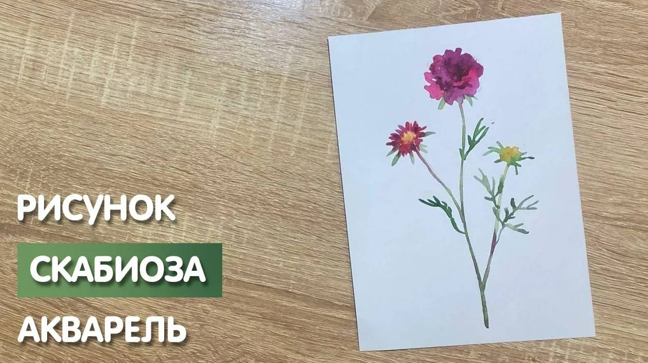 Как нарисовать цветок "Скабиоза" карандашом и акварелью начинающим | Рисунок для детей