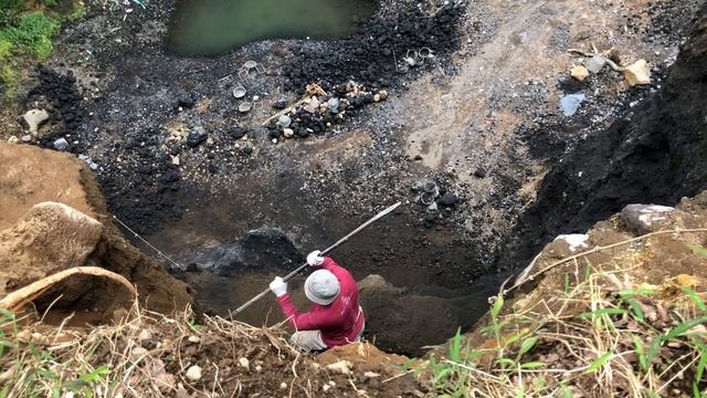 Строительство, шахтёры добывают песок на скалах