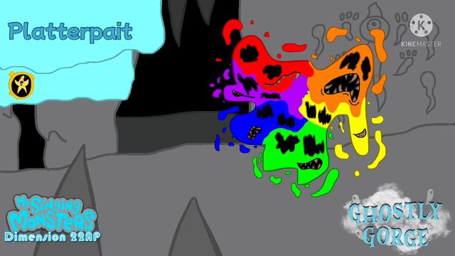 I gave myself a lot of space to work with Maybe a little too much- Monster stats: Name: Platterpait Class: Legendary (Picasion) Gender: Genderless Codename: paint_from_hell_good_lord.pic Sound: Aggressive Synth Lead Physical Form: Blob of paint Bio: At first glance, Platterpait might seem like a very aggressive creature. It’s 12 hollow eyes, gnashing teeth, and ear-piercing screeches are bound to make you think “I need to run, before this thing starts charging at me”. Despite all that, this monster wouldn’t hurt a fly, in fact, it’s one of the dumbest monsters in Dimension 22-AP. Platterpait is easy to approach since it doesn’t understand the concepts of threats, and it’s friendly nature came from simply viewing kind gestures made by other monsters.