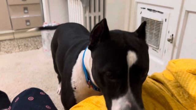 Хард проситься на улицу по этому дурачиться.Просит выйти с ним!Такой он четкий!#dog #amstaff