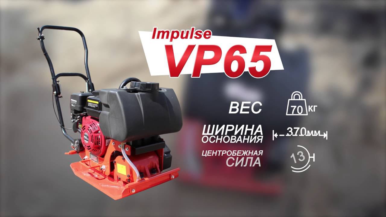 Профессиональная серия бензиновых виброплит прямого хода Impulse VP65 с двигателем Honda и основанием из конструкционной закаленной износостойкой стали подходит для уплотнения слоев сыпучего материала небольшой и средней толщины. Плиты этой серии используются для ремонтных работ по обслуживанию дорог, подъездных путей, тротуаров и стоянок, мощения брусчаткой. Благодаря компактной и лёгкой конструкции, низкой стоимости обслуживания, данная серия плит идеально подойдет для организаций, занимающихся строительством и ямочным ремонтом дорог.