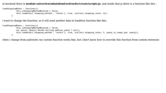 Magento: Override js core function in Magento 2 Helpful? Please support me on Patreon: https://www.patreon.com/roelvandepaar With thanks & praise to God, and with thanks to the many people who have made this project possible! | Content (except music & images) licensed under CC BY-SA https://meta.stackexchange.com/help/licensing | Music: https://www.bensound.com/licensing | Images: https://stocksnap.io/license & others | With thanks to user simple guy (magento.stackexchange.com/users/49926), user Rakesh Jesadiya (magento.stackexchange.com/users/4534), and the Stack Exchange Network (magento.stackexchange.com/questions/160700). Trademarks are property of their respective owners. Disclaimer: All information is provided "AS IS" without warranty of any kind. You are responsible for your own actions. Please contact me if anything is amiss at Roel D.OT VandePaar A.T gmail.com