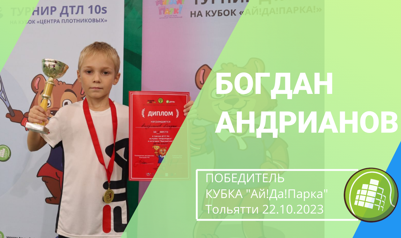 Богдан Андрианов - победитель турнира на Кубок "Ай!Да!Парка" в категории "Красный мяч". Турнир состоялся 22.10.2023 на кортах ОК "Тольятти Теннис Центр"