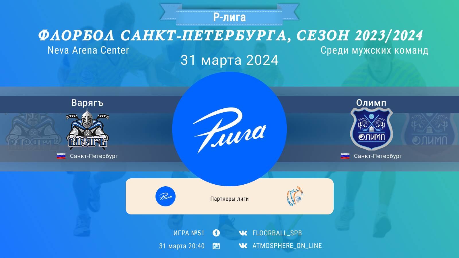 Р-ЛИГА среди мужских команд, Игра № 51 31 МАРТА 2024 САНКТ-ПЕТЕРБУРГ, Neva Arena Center Олимп - Варягъ, 31-03-2024 20:40