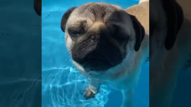Мопсик в бассейне? #бассейн #мопсик #лето