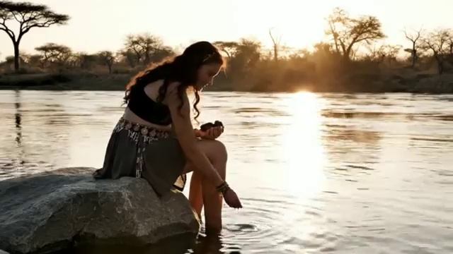 Девочка крадёт цыплёнка у огромной птицы.