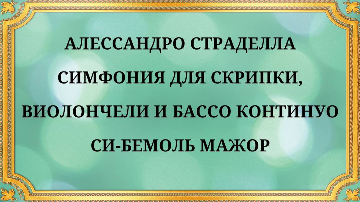 Алессандро Страделла Симфония для скрипки, виолончели и бассо континуо си-бемоль мажор