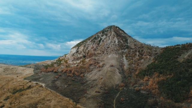 Полет на коптере, возле горы.