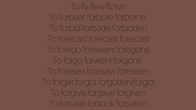 Ох уж эти #неправильныеглаголы. Не все, если честно нужны, но может быть узнаем еще 10 штук . Если быть честным - цвет который я для них выбрал отображает, что я о них думаю. Думаю хотя бы один из них будет незнакомым для вас.