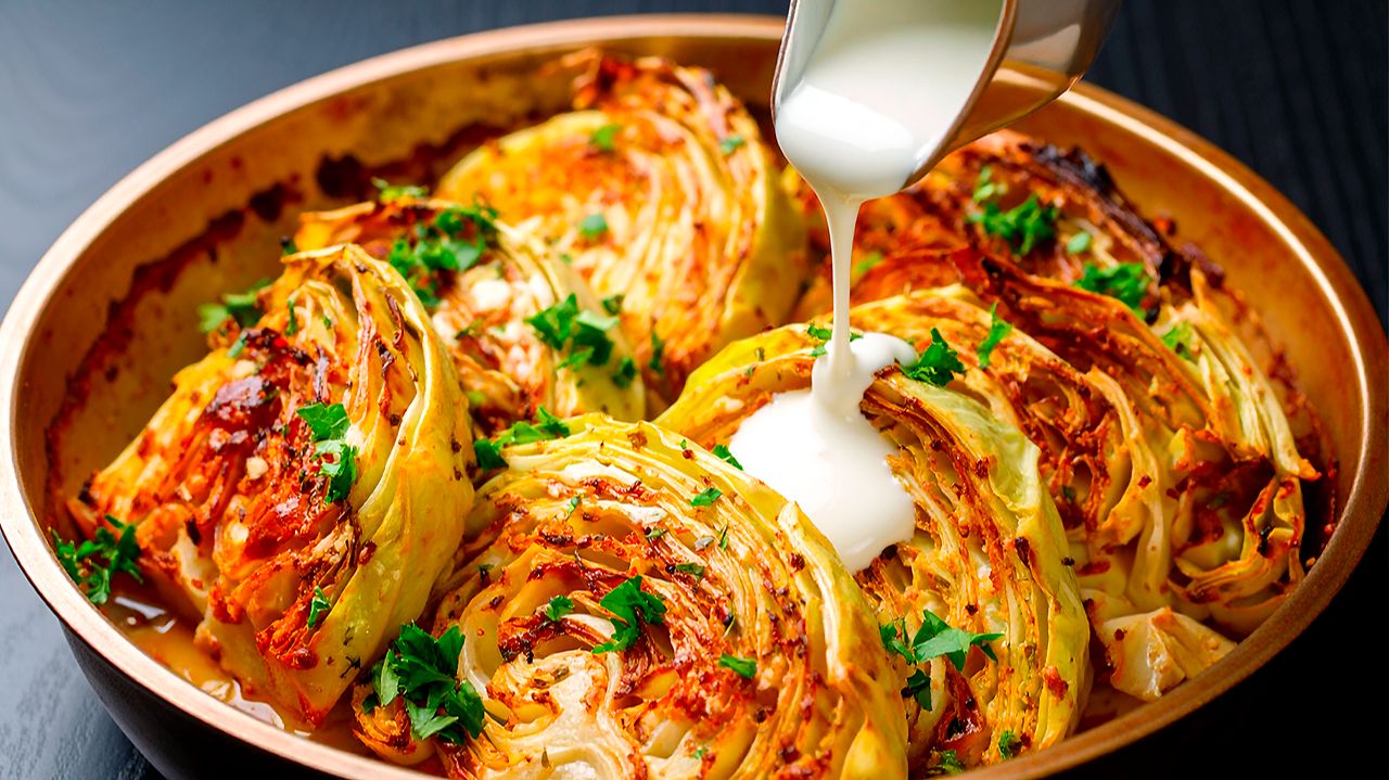 Это блюдо удивит даже тех, кто не любит капусту! Очень сытно, ароматно и празднично! Идеально подходит как для вегетарианского стола, так и в качестве шикарного гарнира. Обязательно попробуйте! 👇 Ингредиенты ищите ниже. 1 капуста. соевый соус 30 миллилитров. оливковое масло 2 столовые ложки. соль, орегано, молотый кориандр по 0,5 ч.л. картофель 3 штуки. растительное масло. пармезан 50 грамм. 1 белый лук. сливочное масло 30 грамм. чеснок 5 штук. грибы шампиньоны 4 штуки. сливки 10 % жирности 200 грамм. петрушка. Подписывайся на канал и делись видео с друзьями. Также у меня на канале еще очень много вкусных рецептов, и еще больше рецептов ждет вас впереди. Телеграмм https://t.me/vkusnierecipe Вконтакте - https://vk.com/vkusnierecipe Одноклассники - https://ok.ru/group/70000000861442 Дзен - https://clck.ru/3GMSjT Весь музыкальный контент, использующийся в видео на данном канале размещён на основании лицензии Creative Commons 4.0 вариант лицензии CC0 (https://creativecommons.org/licenses/by/4.0/) с медиатеки, где не требуется указания авторства. #рецептыскапустой #сливочныйсоус #вегетарианскийужин #необычныйгарнир