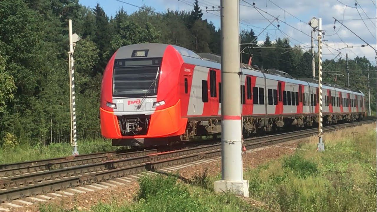 "Ласточка" ЭС1П-025 на переезде.Перегон Часцовская-Портновская.