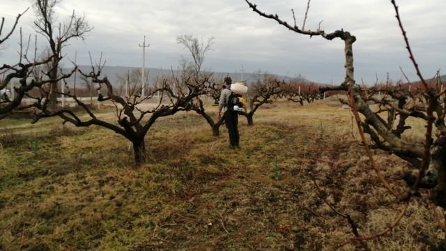 Опрыскиватель бензиновый HUTER GS 5215, опрыскиваем персик.