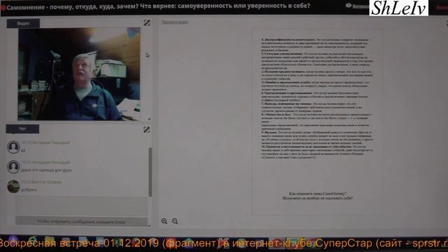 Фрагменты «Воскресная встреча в интернет-клубе СуперСтар» 01.12.2019 (сайт - sprstr.ru). Разговор о самооценке - самомнении