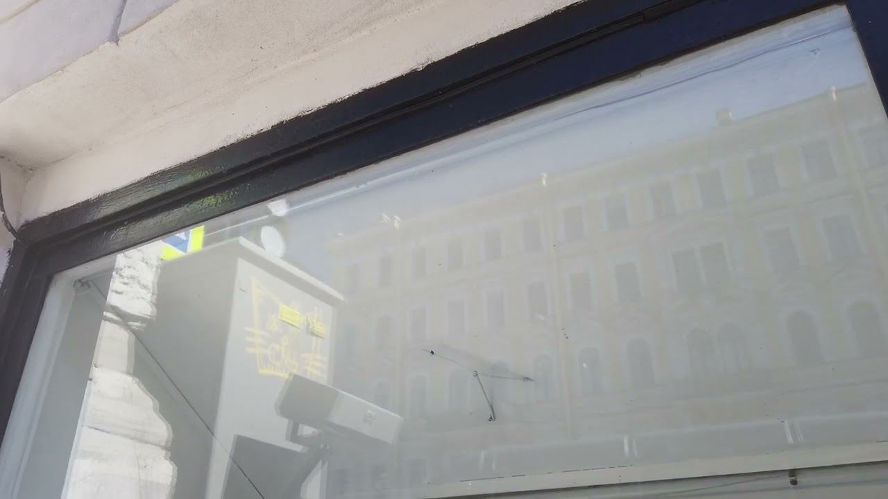 Механическая птица в витрине машет крыльями