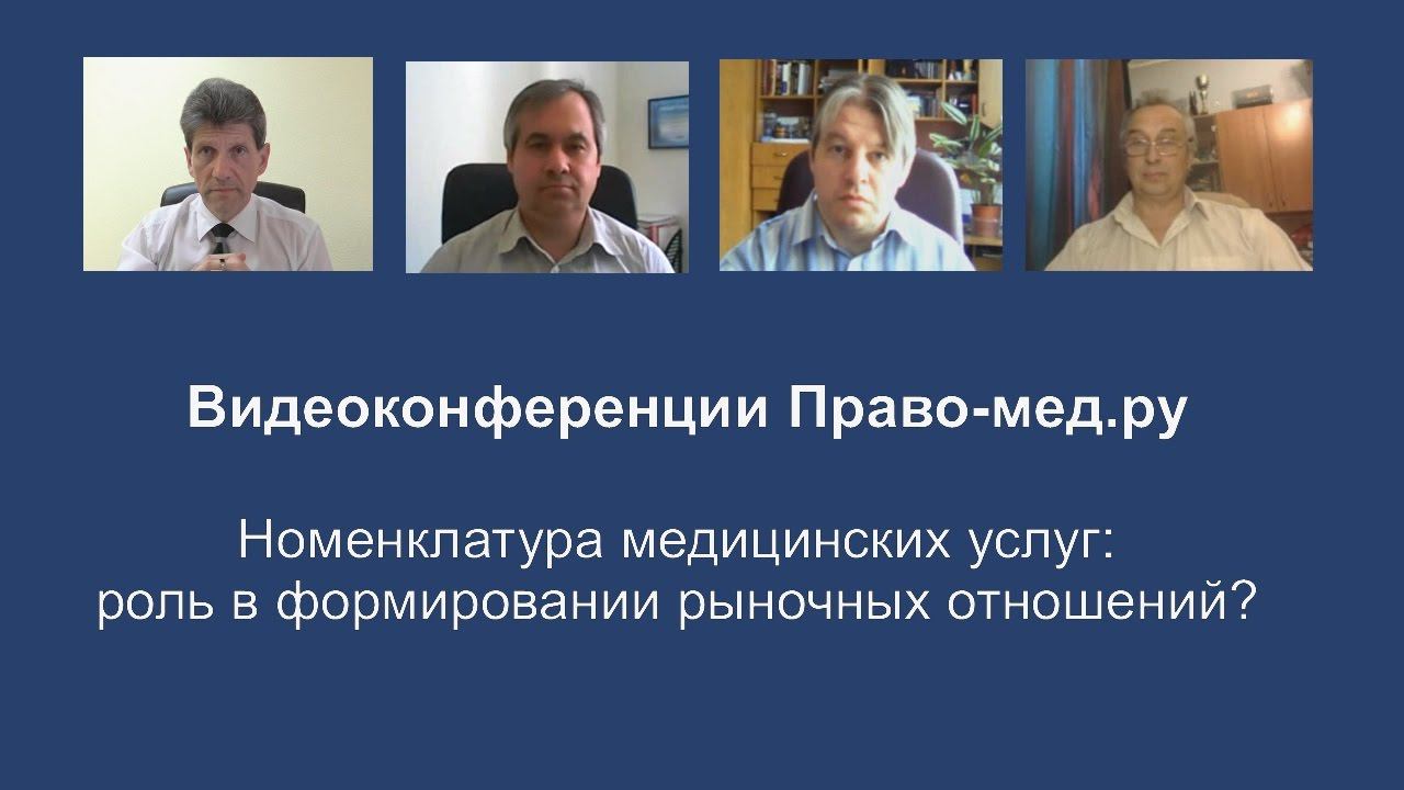 Видеоконференция Право-мед.ру от 21 марта 2017 года, на которой обсуждались нормативно - правовое регулирование обозначения наименований платных медицинских услуг Текстовая версия и новость по ссылке http://pravo-med.ru/news/13482/ Рассмотренные вопросы 1. Назначение номенклатуры медицинских услуг 2. Обязательна ли Номенклатура для использования при оказании платных медицинских услуг? 3. Контроль за применением и меры юридической ответственности за несоответствия названия оказываемой услуги требованиям приказа Минздравсоцразвития России от 27.12.2011 N 1664н? Участники Панов Алексей Валентинович, главный редактор информационного портала Право-мед.ру, г. Омск Давальченко Иван Иванович, начальник юридического отдела БУЗОО "Родильный дом №2" , г. Омск Печерей Иван Олегович, доцент кафедры судебной медицины и медицинского права МГМСУ им. И. А. Евдокимова, г. Москва Васильев Игорь Валерьевич, доцент кафедры общественного здоровья и здравоохранения НГМУ, г. Новосибирск