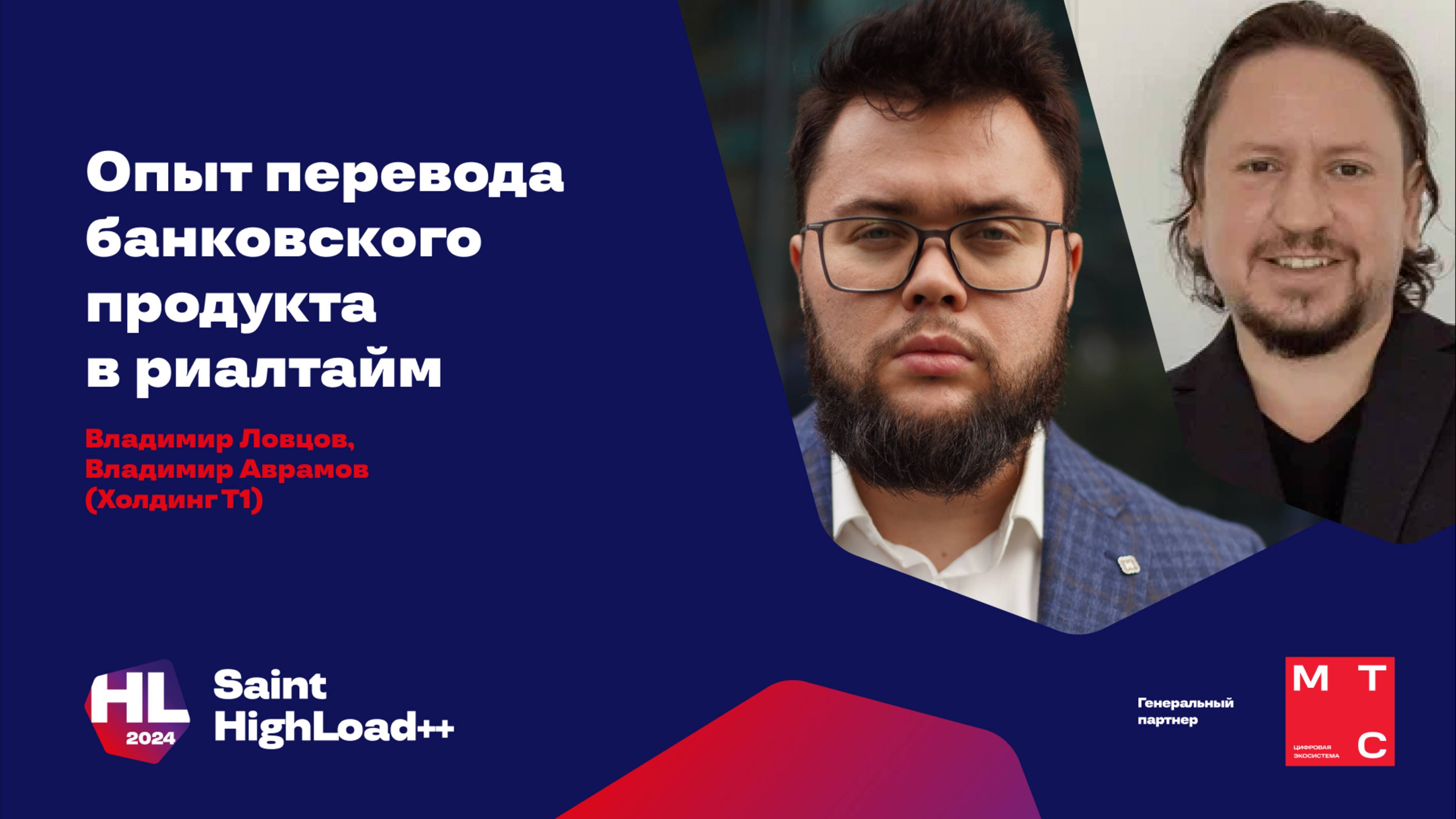 Опыт перевода банковского продукта в риалтайм / Владимир Ловцов, Владимир Аврамов (Холдинг Т1)