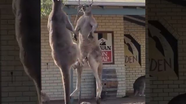 Кенгуру стоят перед австралийским пабом