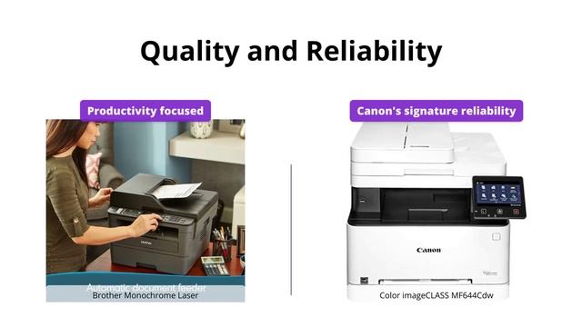 Compare the Brother Monochrome Laser Compact All-In One Multifunction Printer with Wireless Networking and Duplex Printing, Amazon Dash Replenishment Ready: https://buy-sm.art/dp/B0763ZCH7K and the Color imageCLASS MF644Cdw All-in-One Wireless Mobile-Ready Duplex Laser Printer with 3 Year Warranty: https://buy-sm.art/dp/B07QK2KDYC Which one is the best fit for your needs? Watch this video to find out!