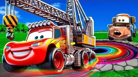 🌈 Трансформация радужной ямы: Большая и маленькая Молния Маккуин и Мама против машин