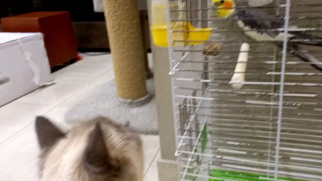 Попугай Корелла и кошки.