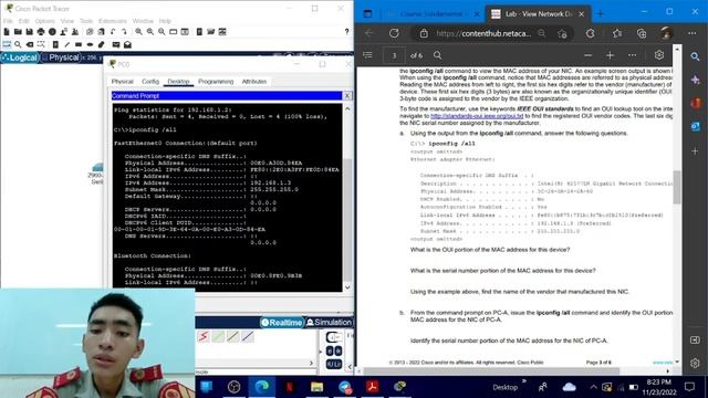 Praktikum Cisco Packet Tracer 7.2.7 Ethernet Mac Address
