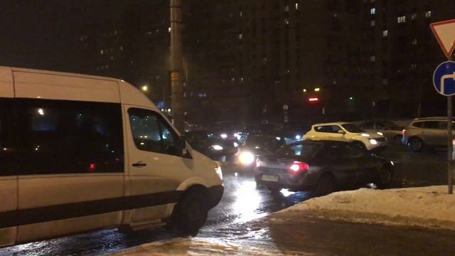Трамвай сошёл с рельс на перекрестке пр. Луначарского и Выборгского шоссе. Спец. службам потребовалось около часа, чтобы вернуть вагон на рельсы и восстановить движение. За это время на дороге происходил хаос..автомобили двигались по пешеходным тротуарам, обочинам и где только попало..