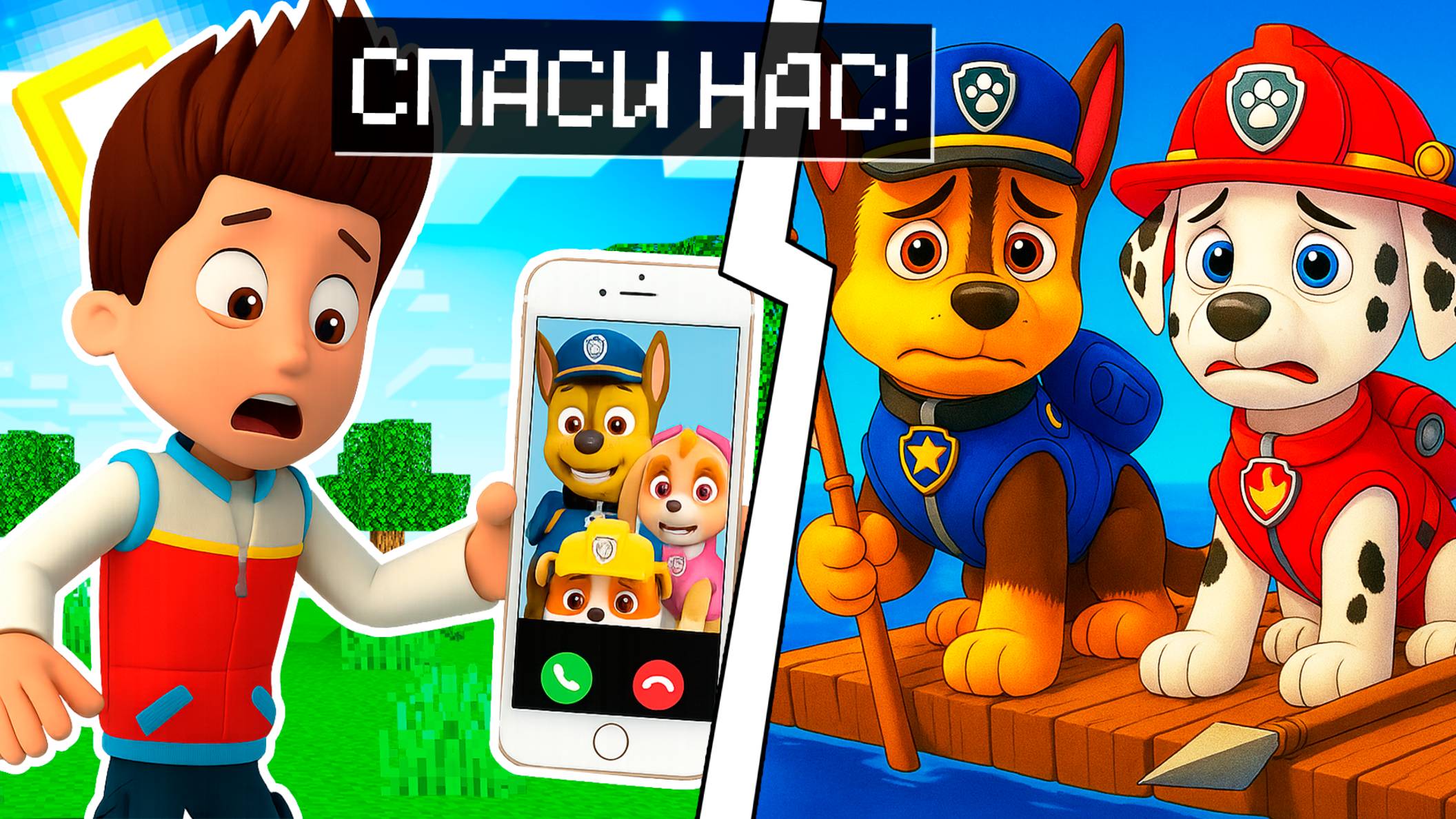 МНЕ ПОЗВОНИЛ МАРШАЛ и СКАЙ В МАЙНКРАФТ! ЩЕНЯЧИЙ ПАТРУЛЬ ЗАСТРЯЛИ НА ОСТРОВЕ!