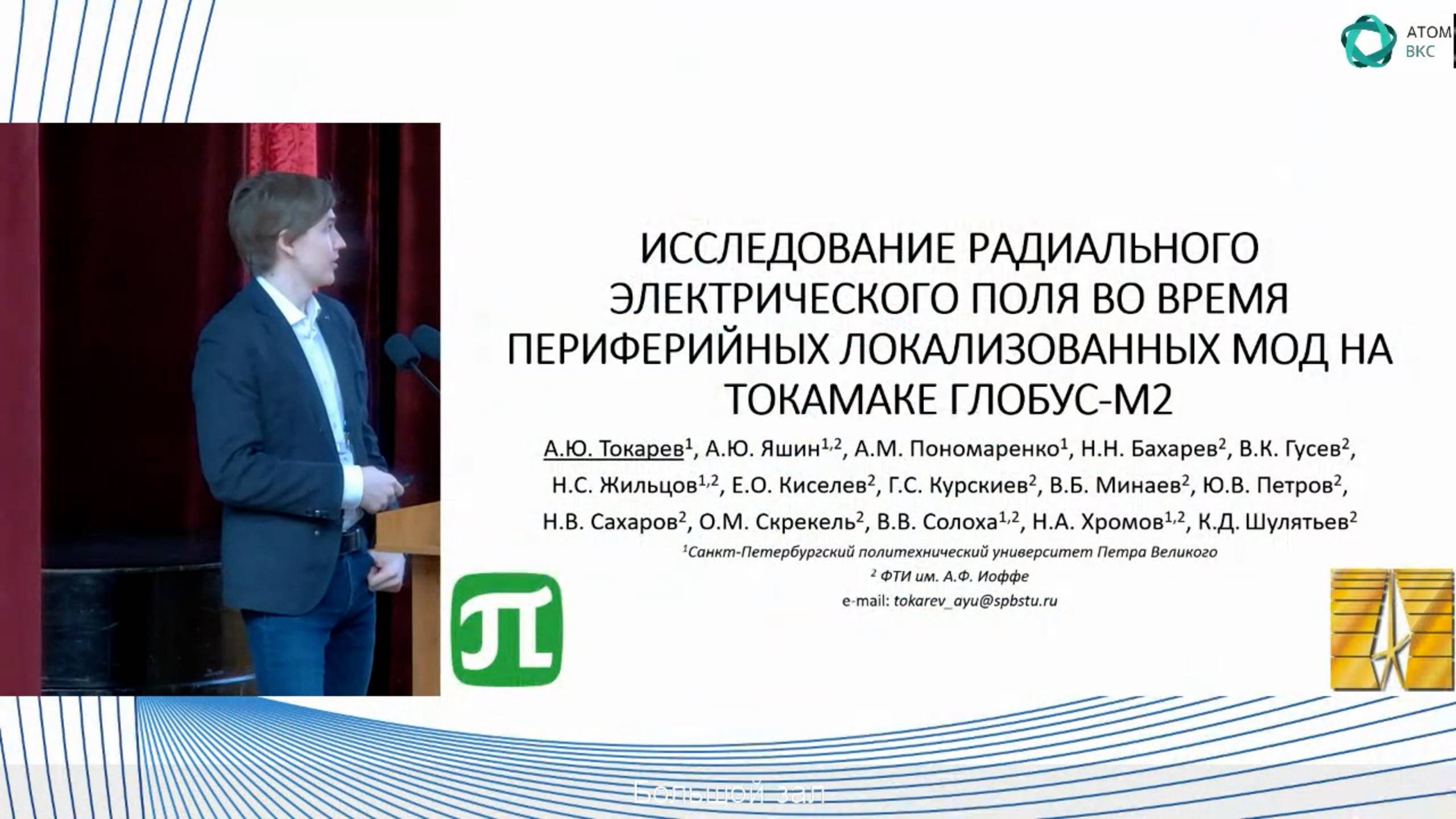 Исследование радиального электрического поля во время периферийных локализованных мод на токамаке ГЛОБУС-М2. 1Токарев А.Ю., 1,2Яшин А.Ю., 1Пономаренко А.М., 2Гусев В.К., 1,2Жильцов Н.С., 2Киселев Е.О., 2Курскиев Г.С., 2Минаев В.Б., 2Петров Ю.В., 2Сахаров Н.В., 1,2Солоха В.В., 1,2Хромов Н.А. (1Санкт-Петербургский политехнический университет Петра Великого, С.-Петербург, Россия, 2Физико-Технический институт им. А.Ф. Иоффе РАН, С.-Петербург, Россия) НАУЧНО-ДЕЛОВОЙ ПОРТАЛ «АТОМНАЯ ЭНЕРГИЯ 2.0» https://www.atomic-energy.ru СОЦИАЛЬНЫЕ СЕТИ Новости в Telegram: https://t.me/Nuclear_Energy_Russia Атомный чат в Telegram: https://t.me/Open_Nuclear_Chat Сообщество ВКонтакте: https://vk.com/AtomicEnergyRu Дзен Блог: https://dzen.ru/atomic-energy.ru Видеоканал Rutube: https://rutube.ru/channel/24721138/ Видеоканал Youtube: https://www.youtube.com/c/AtomicEnergyRu О ПРОЕКТЕ https://www.atomic-energy.ru/about СОТРУДНИЧЕСТВО И РЕКЛАМА https://www.atomic-energy.ru/partnership