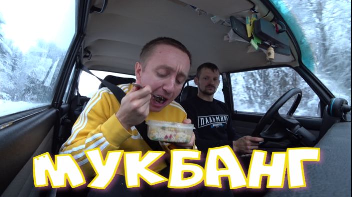Мукбанг. Ем на ходу. Выехали из Питера в Псковскую область.