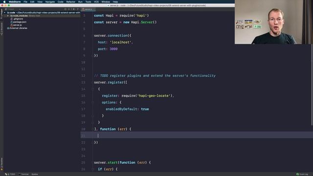 hapi has a very powerful plugin system build into the core. While the hapi core is minimalistic, you can add functionality like view rendering, static file support and many more with ease! Also, logging and even more complex scenarios like websocket and API versioning can be added using plugins. This video shows you how to register plugins to your hapi server and with that extend the functionality specifically. Find the tutorial for an easy read here: ► https://futurestud.io/tutorials/hapi-extend-your-server-functionality-with-plugins hapi-geo-locate plugin on GitHub ► https://github.com/fs-opensource/hapi-geo-locate Future Studio on GitHub ► https://github.com/fs-opensource Watch the playlist with all hapi videos here: ►https://www.youtube.com/watch?v=-o6IxDy3pIk&list=PLpUMhvC6l7AMXP2bWhHF6UTZGseIkWUG_ ---------------------------------------- Future Studio is helping 5,000+ users daily to solve Android and Node.js problems with 320+ written tutorials and videos. We’re on a mission to provide new in-depth content every week. Checkout 320+ technical in-depth tutorials: ►https://futurestud.io Subscribe for two new videos every week: ►https://www.youtube.com/c/FutureStudio?sub_confirmation=1 ---------------------------------------- Follow us on social media to get updates on new content: ►https://twitter.com/futurestud_io ►https://www.facebook.com/FutureStudioUniversity ►https://plus.google.com/+FutureStudioUniversity