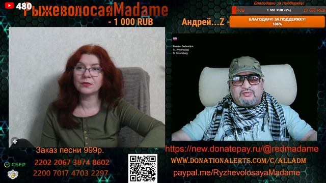 Стримы проводим на новом канале по ссылке https://www.youtube.com/channel/UCpd7cP8a8TbXkhRfZB9-V1g также стримы можно смотреть на следующих платформах https://vkplay.live/rmadame https://vk.com/video/ @RMadame https://boosty.to/ryzhevolosaya-madame Свежие нарезки можно смотреть https://dzen.ru/redheadmadamchat?share_to=link https://www.youtube.com/@RMadam1 https://www.youtube.com/@RMadame Пообщаться в голосовом чате, обсудить новости и узнать первым о предстоящем стриме можно подписавшись на телеграмм канал https://t.me/redheadMadamchat Все беседы ведутся с развлекательной целью и не направлены на разжигание какой либо вражды. Поддержать меня карта Сбер 2202 2067 3874 8602, Тинькофф 2200 7009 0724 4924 или голосовым донатом по ссылке https://www.donationalerts.com/r/alladm