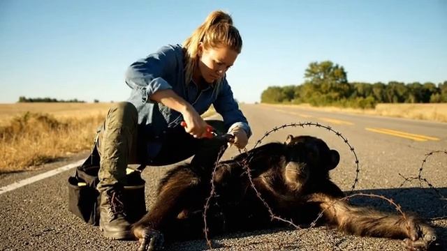 Спасение шимпанзе из клубка дорожных проводов