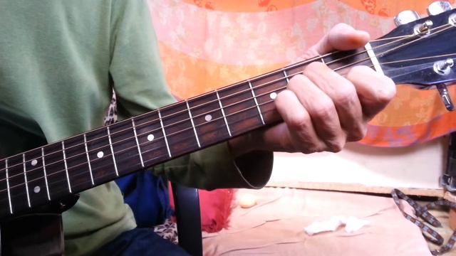 F# diminished 7 chord. Hondo acoustic with fretboard lifting.