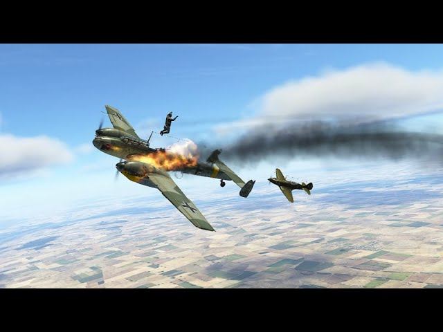 Два МиГ-3 против двух Bf110. Прицельно в двигатель. VR