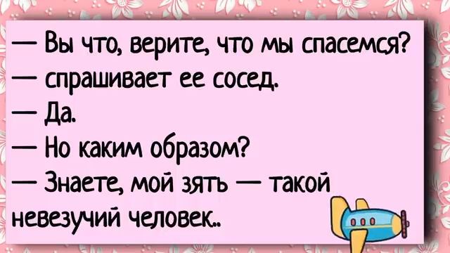 Идет мужик по пустыне, без еды, без воды, захотелось ему пить. Мужик говорит слух. Ох, как пить, хочется. Удруг с неба под этот лопата, и голос говорит, Копай, мужик копает и находит кувшин с водой. Обрадовался по пил, голос говорит, Верни лопату, мужик бросает лопату вверх, и она исчезает. Идет дальше, захотелось ему есть. Мужик говорит слух, ох, как есть, хочется. Удруг с неба подает лопата, и голос говорит, Копай, мужик копает и находит к родину с едой. Обрадовался по Ел, голос говорит, Верни лопату, мужик бросает лопату вверх, и она исчезает. Идет дальше, захотелось ему все касса. Удруг с неба подает лопата, и голос говорит, Копай, мужик копает час, копает два, ничего не нашел. Устал и говорит слух, Малю, чего ты задолбался, голос верни лопату. Однажды король, проезжая по своему корле вству, встретил крестьянина и удивился. Насколько этот крестьянин похож на него? Король спросил, скажи, как крестьянин, Не прислуживало ли случайно твоя мать во дворце? Нет, Ваше величество, но мой отец прислуживал. Общежите, студент, студенту. Вась, давай свинью за видео. Ждурел ты и горь, грязь, вовань, поможет привыкнет. Совет дня, если на берегу африканская реки на вас напал разъяренный буйвал, прыгайте в воду, он за вами не полезит, крокодило в боится. Отец воспитывается и на студента. Вместо того, чтобы учиться, ты дурак, всё подевка бегаешь. Понимаешь, папа, заткнись, кто-то у татет, ты или я? О, папа, оба. Беседуют две охотничества баки. Вчера идём с хозяином по лесу, вдруг из-за кустов как выскочет мне дверь. А хозяин как назло, патроны забыл. У тебя как брушись на него, как за ру, как у тебя тут смелая. Брусилась на зверю. Да, на какого зверя, на хозяин обросилась, обняла его лапами и как закричу. Бежим предурак. Дин мужик на сельской дороге угодил в кювет. Сам выбрался и пошёл искать помощь, чтобы вытащить машину. В одном дворе он встретил фермер, и фермер сказал, что вытащит машину, конём. Закрепили трос, и фермер закричал. Тащи бурка, тащи. Конь Нишагу не сделал, стоит не шевелязь. Тащи бутевал, тащи. Опять никакой велошадиной реакции. Тащи звёздочка, тащи. Коня Гостает, ушами придёт. Тащи Сивка. Тащи. И Сивка легко вытащила автомобиль из каналы. Мужик спрашивает фермера. Почему вы три раза называли вашего коня другими именами? Пока не назвали своими именем. Знаете, Сивка слепой. И если он будет знать, что он один должен тащить, не за что не сдвиниться с места. Мужик приходит на работу с перевязанной рукой. Приятель спрашивает, что случилось только между нами. Выпил черокрепка. И что, подрался? Да нет. За закускай полез. Умыша ловку. Стретились два деда. Ну что, Михайлович, вспомни молодость. Пойдём по девкам. Пошли Петрович. А если откажут, ну это не беда. Беда будет, если согласится. Звонок взрослой дочери. Мама, привет. Привет, доча. Это папа. Да и мне маму. Она не может. Она под столом. Мы сегодня на мою зарплату столько всего накупили. Она сейчас отрабатывает. Папа, ну что ты опять пошлятину говоришь? Пошлятину? Она пол мойет. Звонить девушка парню. Я заболела. Ты будешь меня навещать? Ну точно так же, как ты меня, когда болел я. Почему ты такой же стокий? Привет, Саша. Кто это? Это Настя. Я получила права. Мы же развились уже. Зачем ты мне это рассказываешь? Чтобы ты аккуратнее переходил дорогу. Вася, ты почему вчера не был в школе? Спрашивает учительница. Потому что мы вчера наше воде и душку хорон