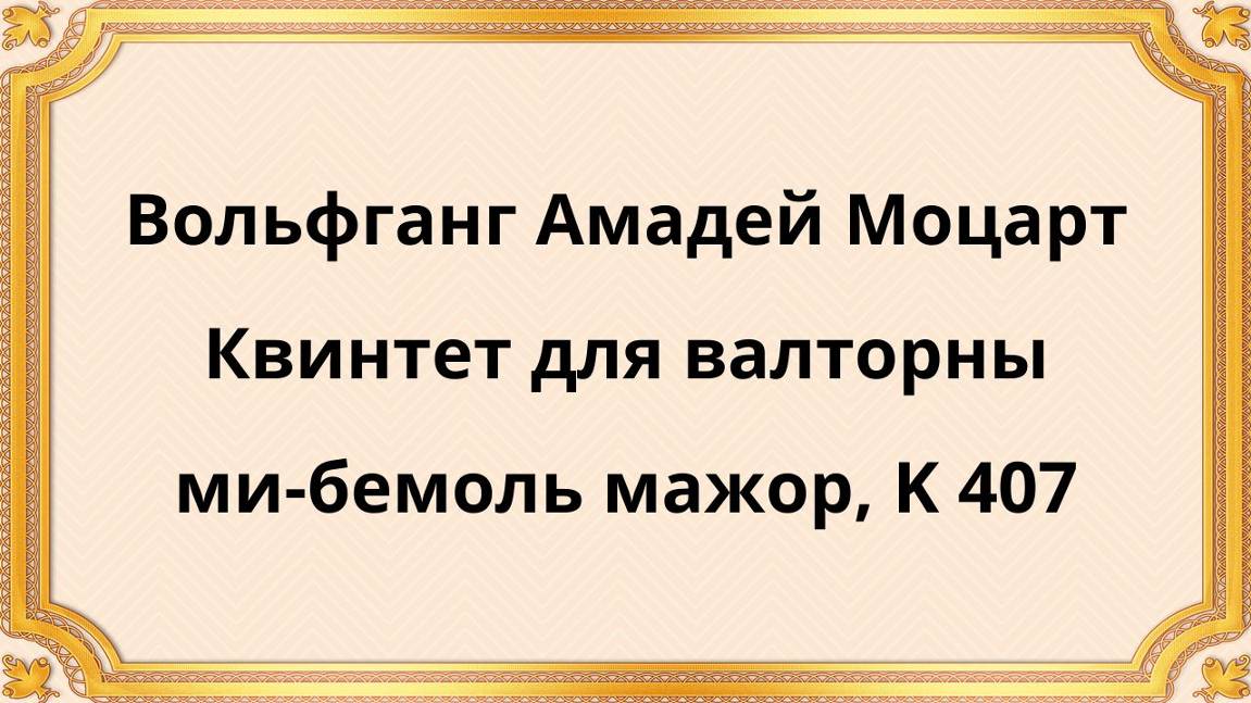 Вольфганг Амадей Моцарт Квинтет для валторны ми-бемоль мажор, K 407