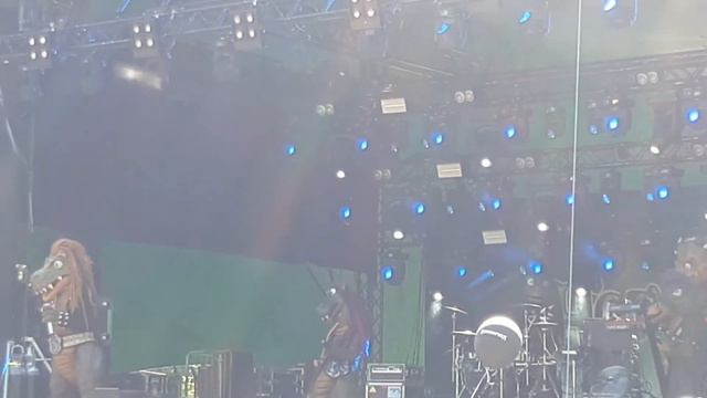 Hevisaurus performing "Viimeinen mammutti" at Nummorock 2022, on a heaty midsummer day.