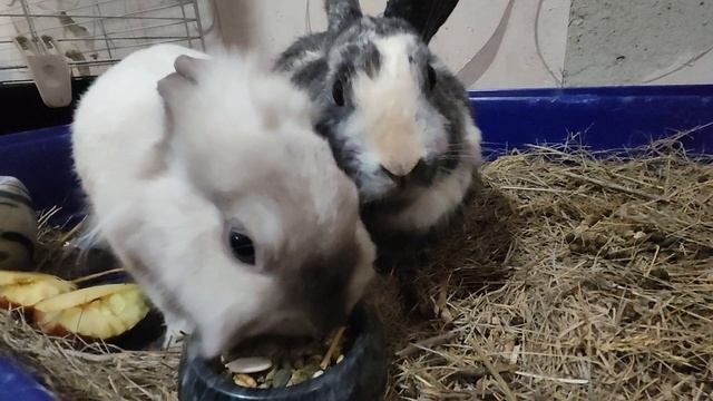 Кормлю кроликов, кто первый будет есть?