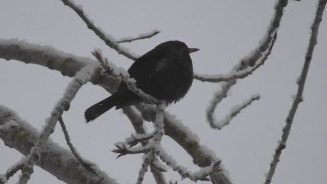 Чёрный дрозд, наблюдение птиц в Великом Новгороде, 21 января 2024