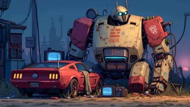 Giant Robot Guardian & Red Mustang | Ultimate Retro Synthwave 80s Vibe