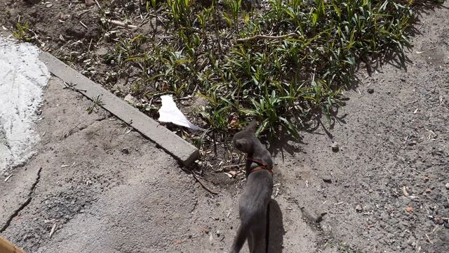 Возле дома , котёнок Тишка домой идти не хочет .