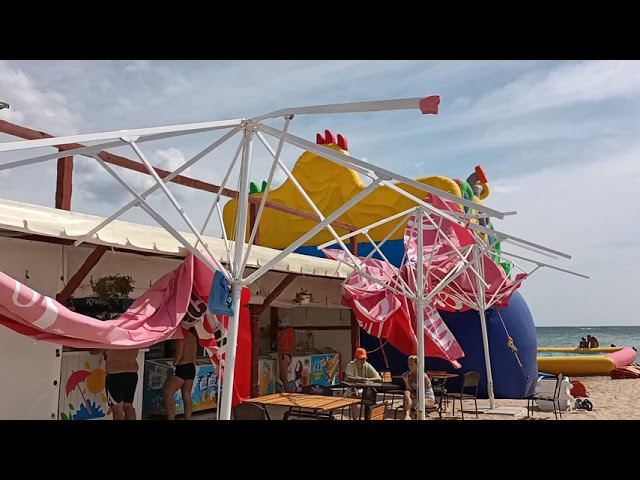 Чудовищный порыв ветра всё поломал нафик!=) Пляж Лазурный Берег. Евпатория.